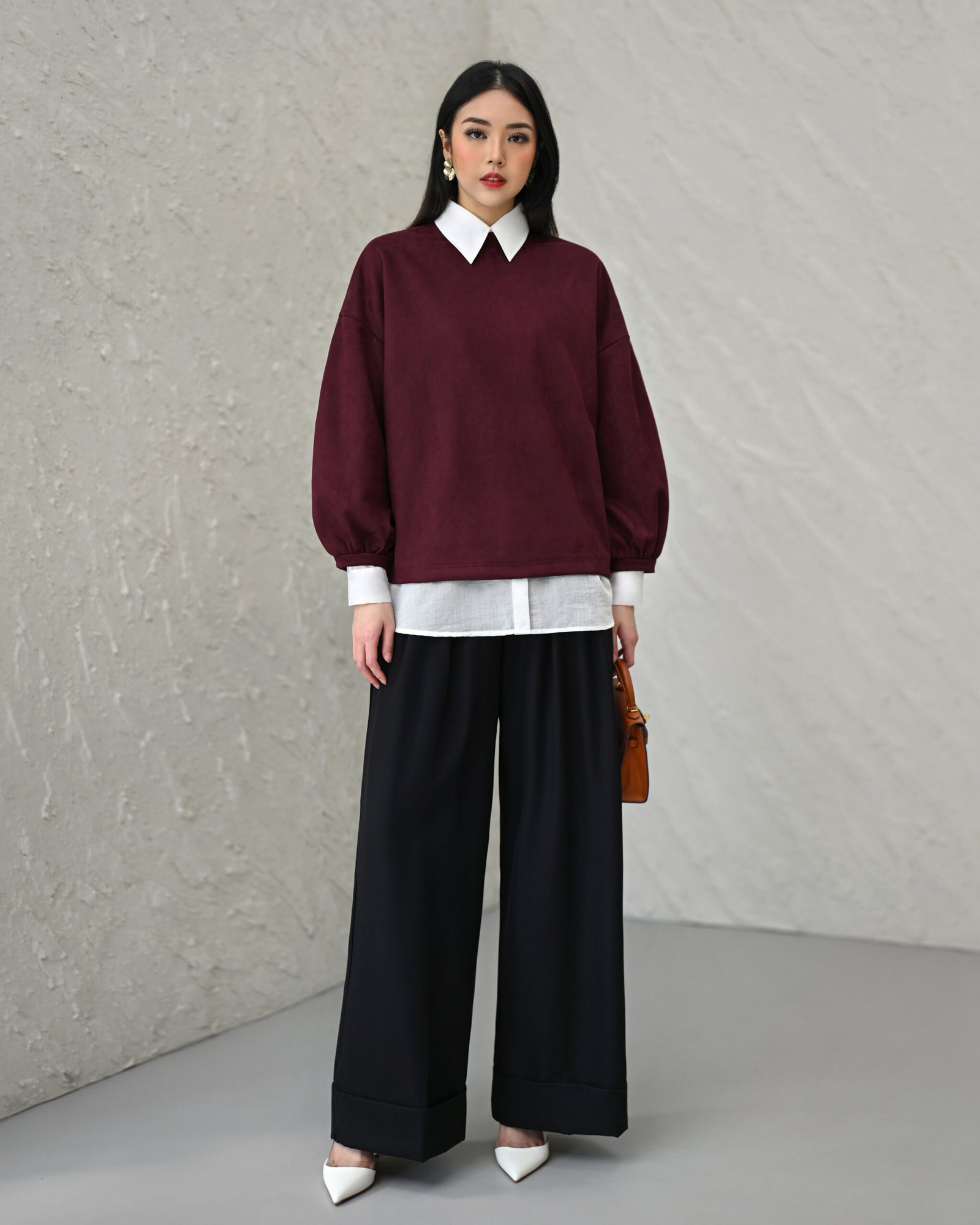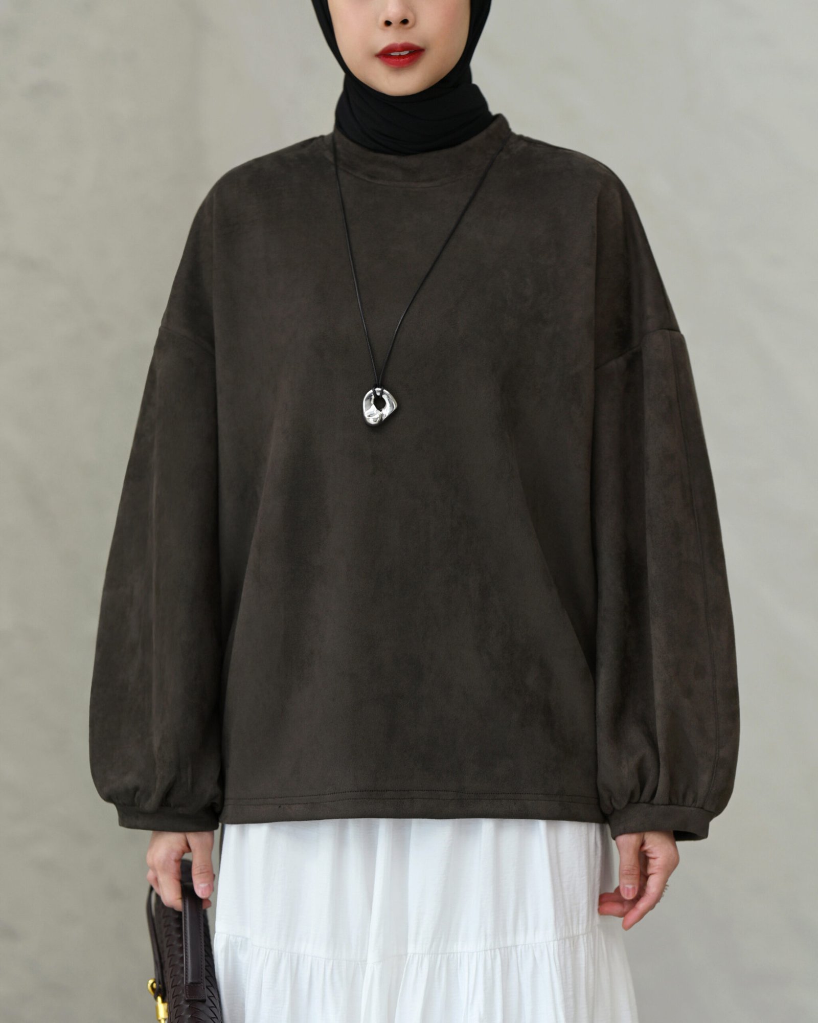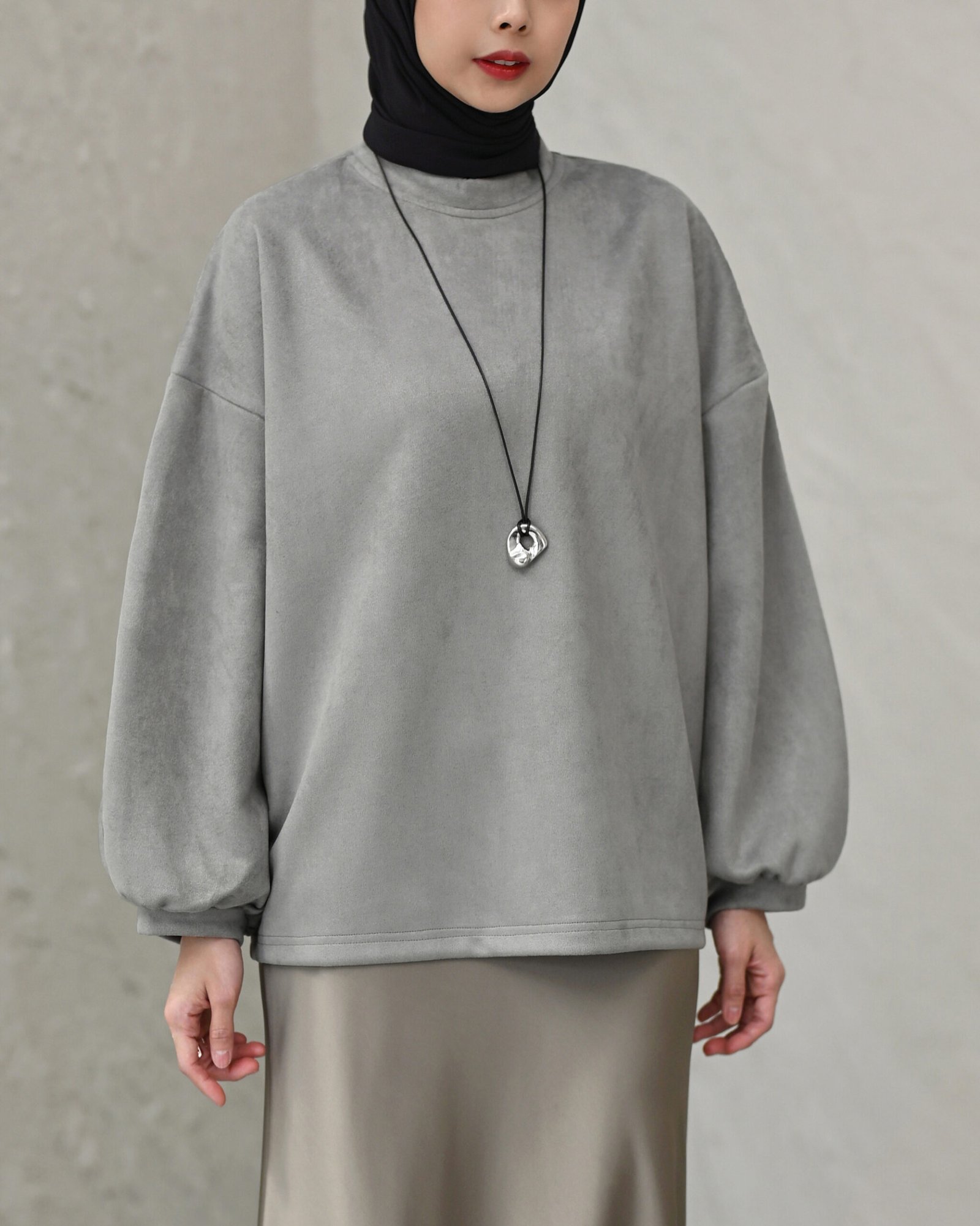 Daily Balloon Sleeve Suede Shirt Modern dan Simple