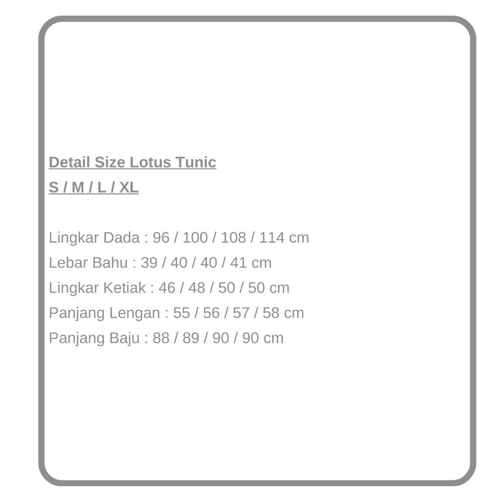 Untuk harga tidak termasuk Inner (dalaman) ya gyz, karena pastinya kalian sudah punya dalaman sendiri dan agar harga Lotus Tunic ini tidak naik jauh..