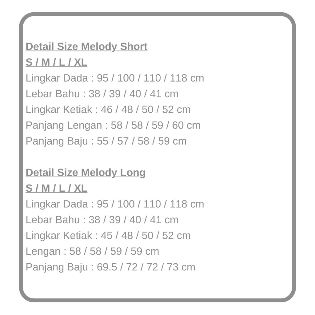 FYI : Untuk Melody sudah full laser embroidery 1 baju (depan belakang) jadi value for money gyz