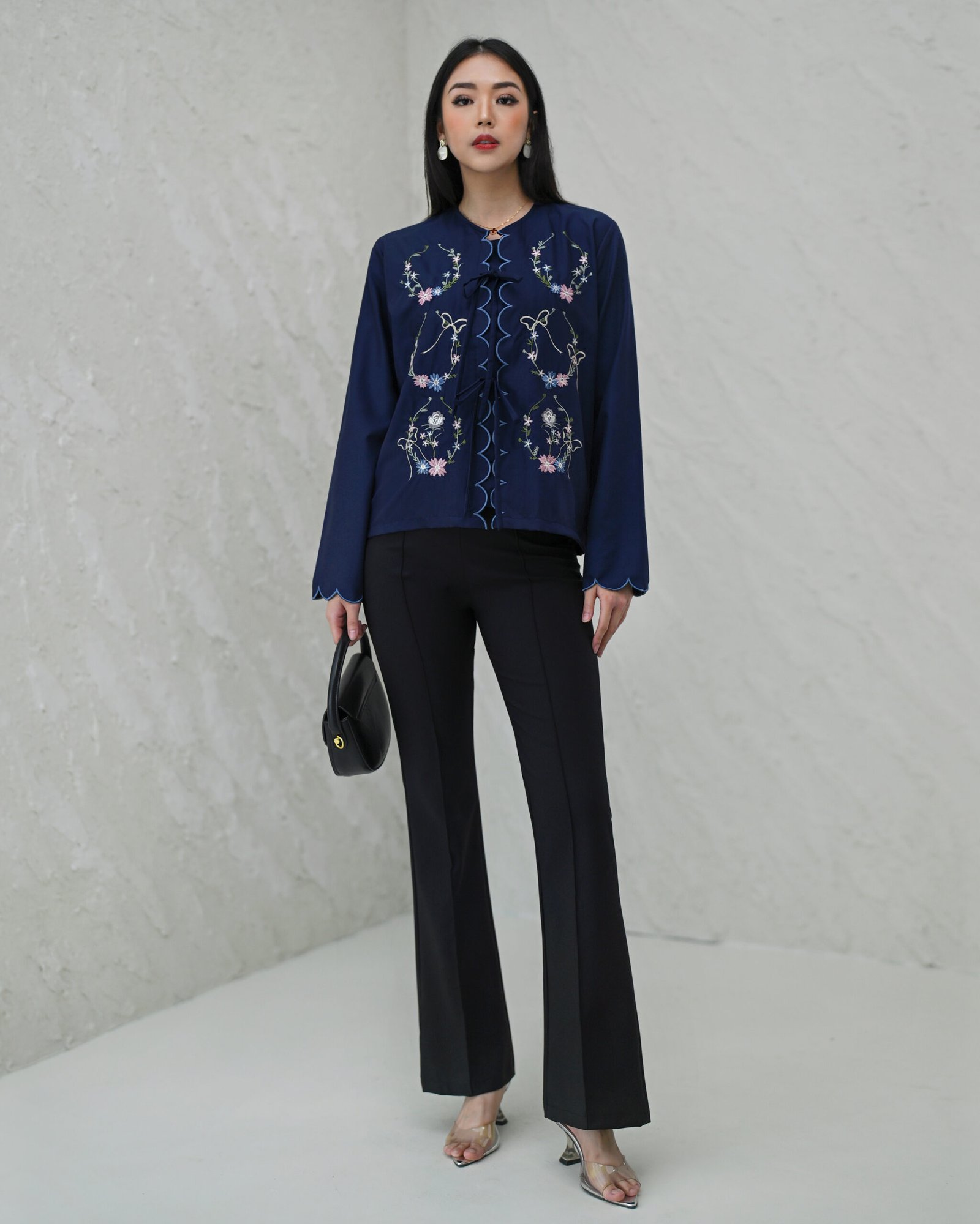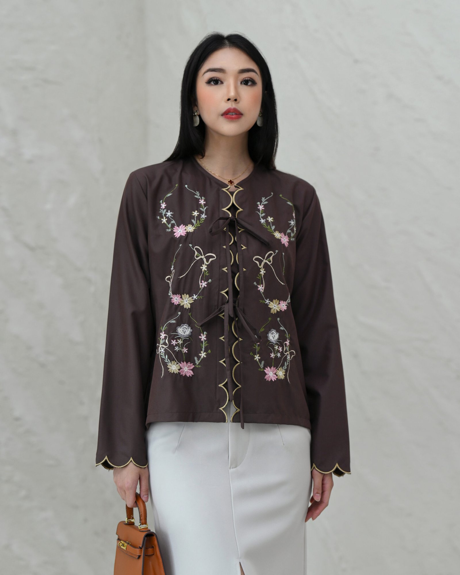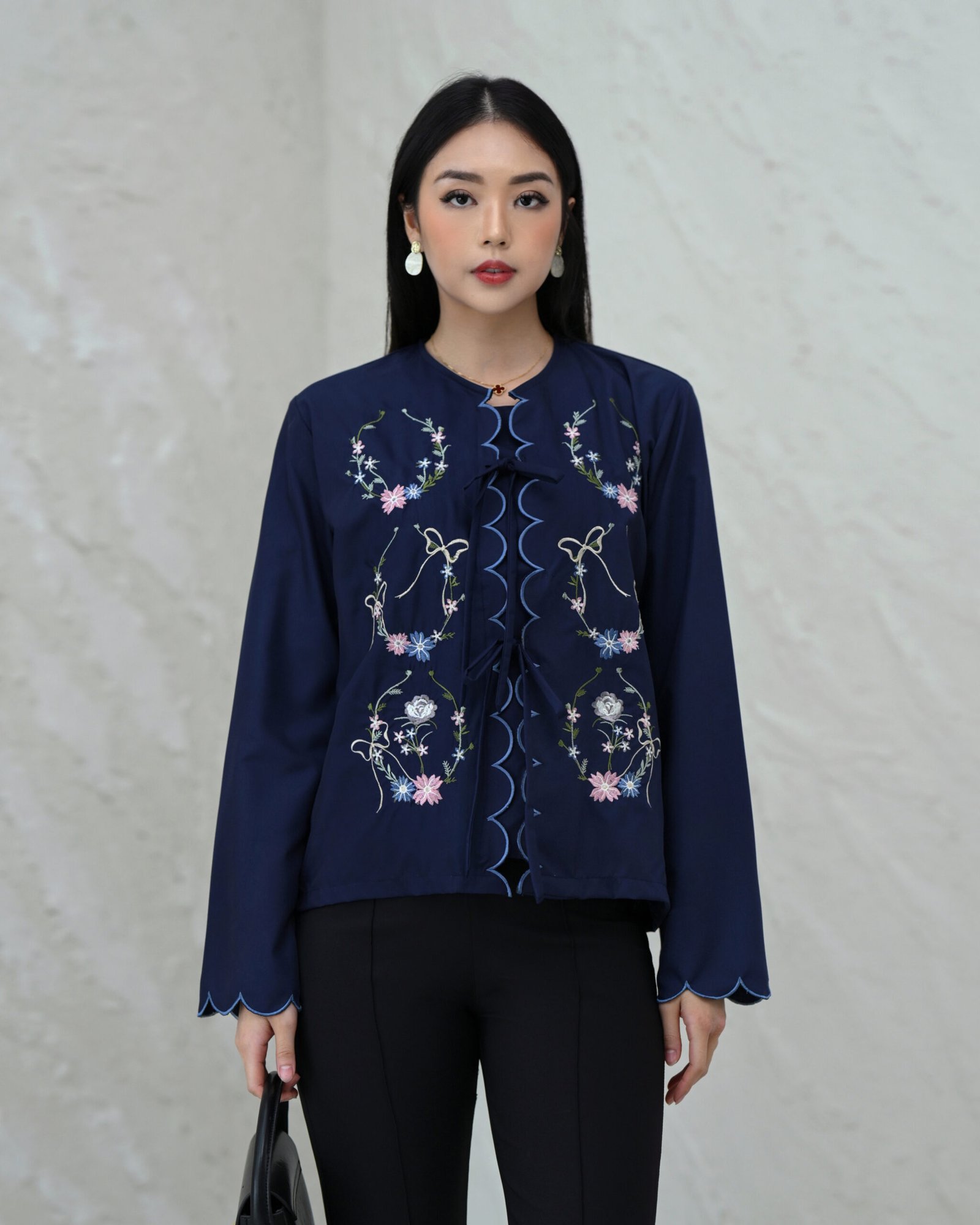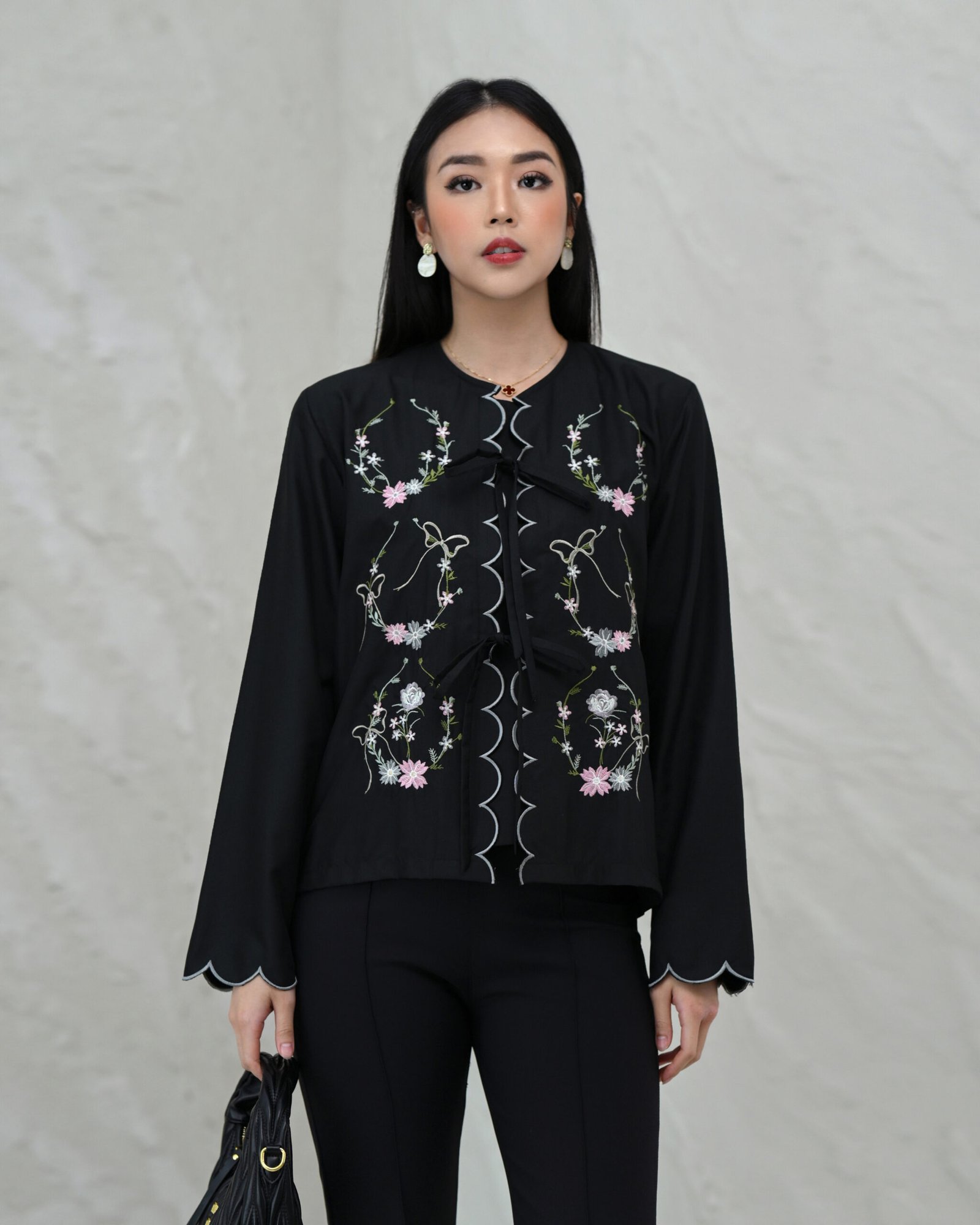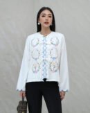 Atasan terbaru corliss dengan detail embroidery yang cantik dibagian depan baju dan ujung lengan, sehingga membuat looks kalian terlihat elegant dan feminin